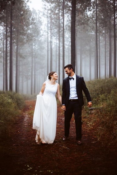 Warm, moody, earth tones are suitable for countryside weddings.